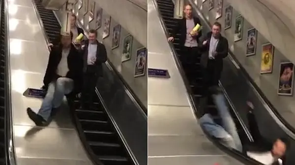 رکنا: مرد جوانی که از نرده های پله برقی یکی از ایستگاهای متروی لندن به جای پله استفاده کرد به طرز وحشتناکی به پایین پله ها سقوط کرد.