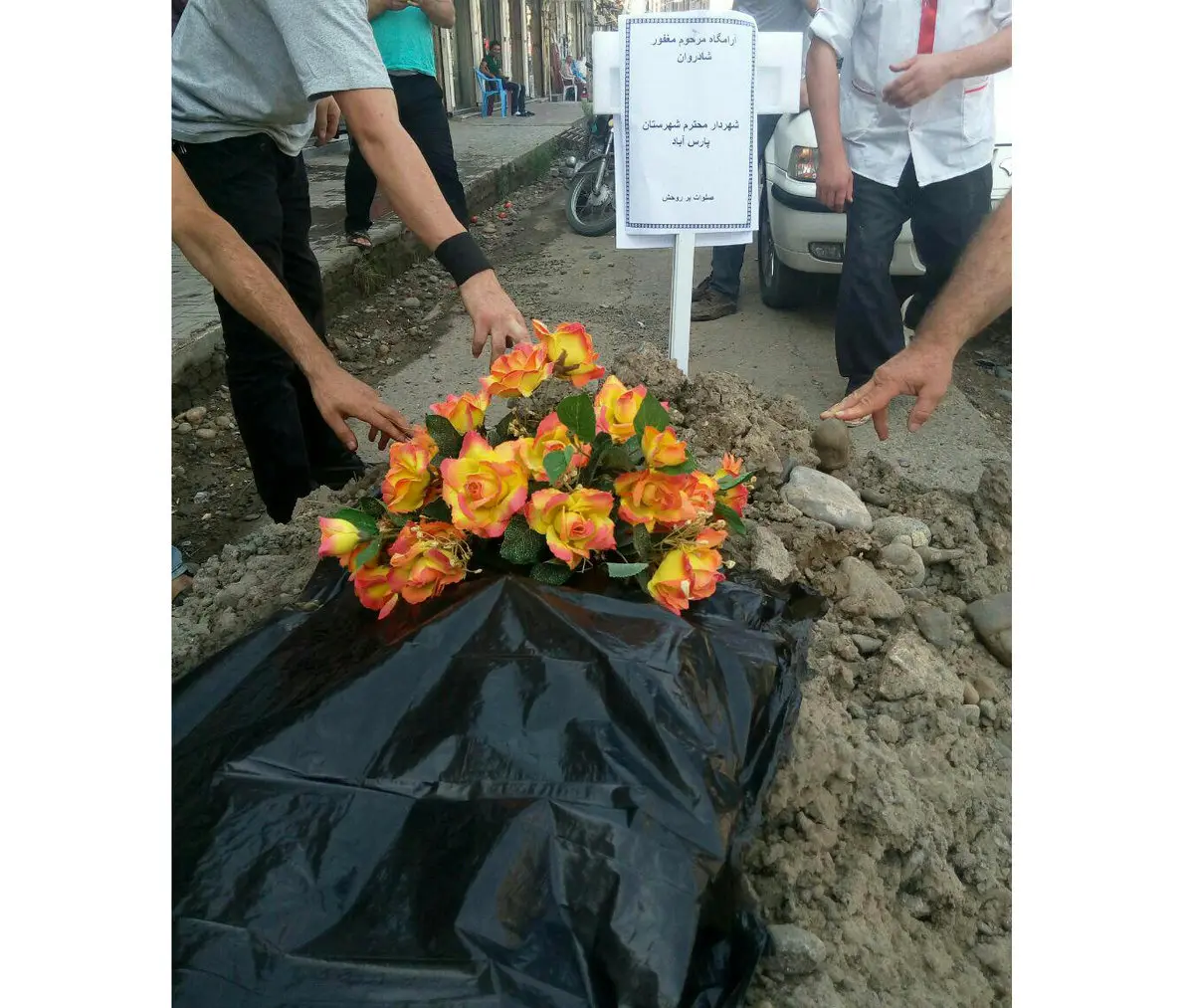 مردم پارس آباد برای شهردار زنده شان قبر کندند! +عکس اعتراض عجیب