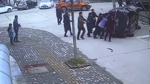 در این ویدئو مشاهده می کنید که مردم شهر هفئی چین که در حال عبور و مرور از خیابان بودند بعد از مشاهده کردن تصادف Crash دو ماشین در یک چهارراه و واژگون شدن یکی از آن ها به کمک حادثه Incident دیدگان آمدند و با کمک همدیگر ماشین شاسی بلند را به حالت عادی بازگرداندند. در این ماشین 3 نفر گرفتار شده بودند که یکی از آن ها یک کودک 7 ساله بوده است که با کمک مردم از ماشین بیرون آورده شدند و به بیمارستان فرستاده شدند.برای ورود به کانال تلگرام ما کلیک کنید.