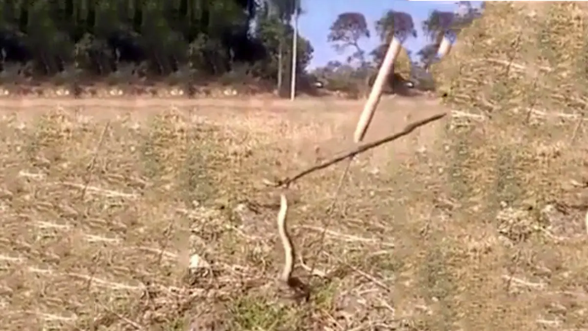 مرد هندی درروستایی در نزدیکی " آسام " در هند در کنار رودخانه ماری را پیدا می کند و با دندان های خود به جان حیوان می افتد.