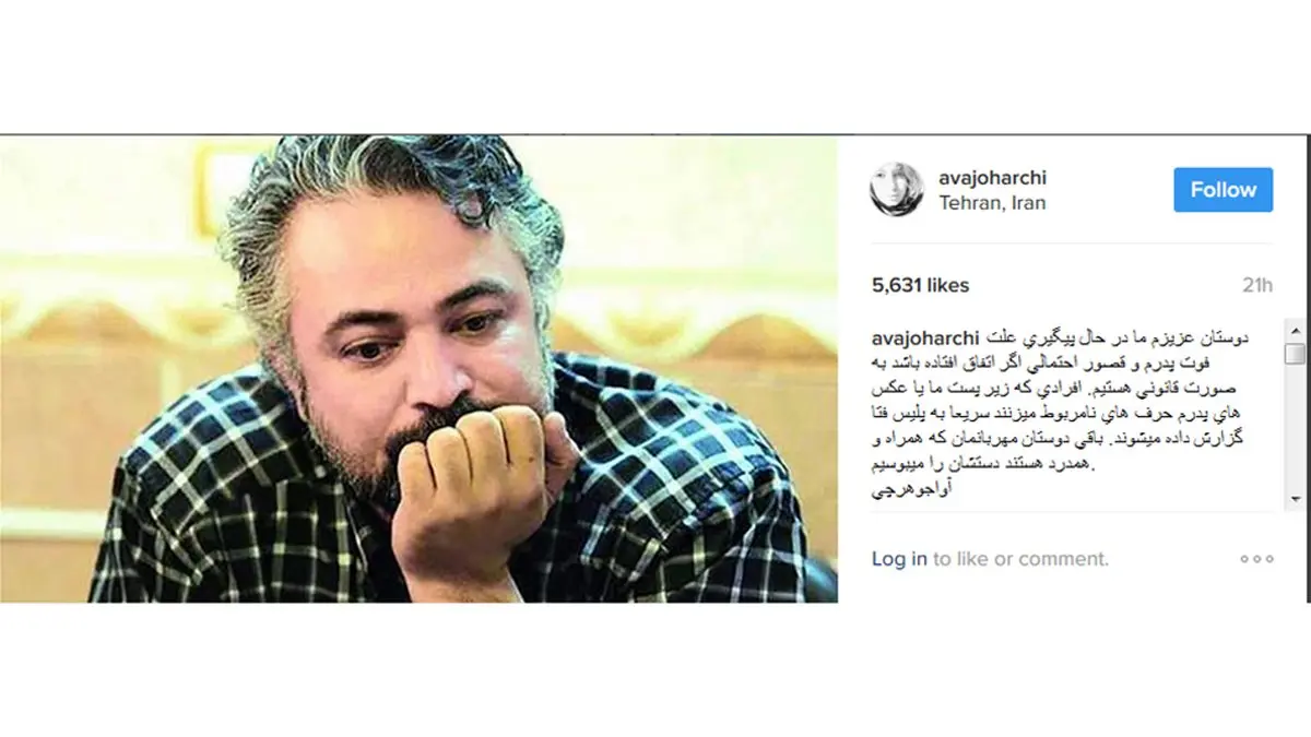 دوستان عزیزم، ما در حال پیگیری علت فوت پدرم و قصور احتمالی، اگر اتفاق افتاده باشد، به صورت قانونی هستیم. افرادی که زیر پست ما یا عکسهای پدرم، حرفهای نامربوط میزنند، سریعا به پلیس Police فتا گزارش داده میشوند. باقی دوستان مهربانمان که همراه و همدرد هستند، دستانشان را میبوسیم.