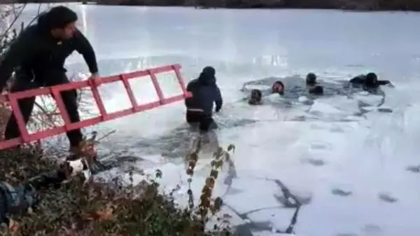 جدال با مرگ 7 نوجوان درون دریاچه یخ زده+ عکس