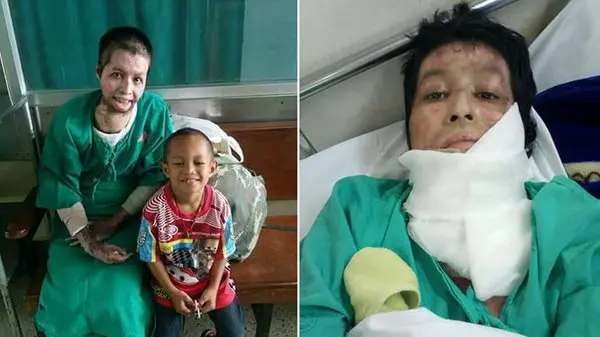 نِدنافا نوآنخول 26 ساله اهل تایلند می گوید: همسر من بسیار خشن، حسود و متعصب است، بین ما جر و بحثی پیش آمد که در پی آن وقتی که من در حال آشپزی بودم، شوهرم روی من نفت ریخت و مرا به آتش کشید، من فریاد می زدم و همسایه ها برای کمک به من آمدند و پس از خاموش کردن شعله های آتش، مرا به بیمارستان بردند، واقعا دردی که از سوختگی می کشیدم غیر قابل تحمل بود.