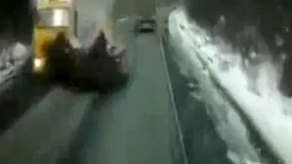 فیلم وحشتناک لحظه شاخ به شاخ شدن خودروی سواری با یک تریلی با سرعت بالا
