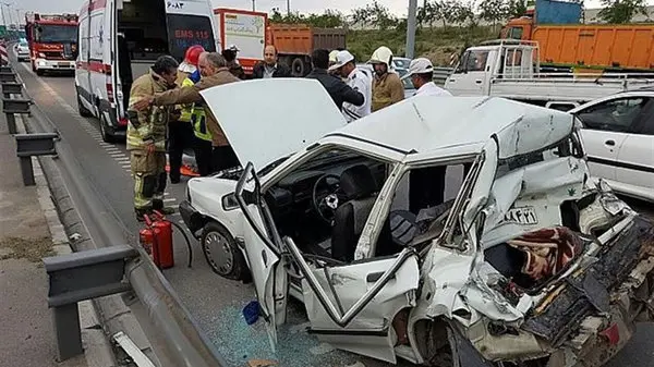 زن جوان داخل پراید در بزرگراه آزادگان له شد و جان سپرد + تصاویر