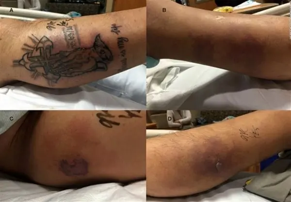 طبق این گزارش به دلیل عفونت بعد از چند هفته تاولهای عفونی سراسر پای راست این مرد را فرا گرفتند.