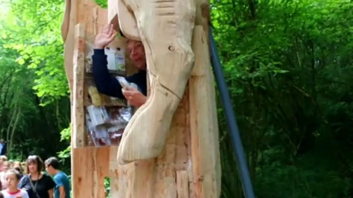 رکنا: یک هنرمند فرانسوی خودش را برای مدت ۷ روز داخل یک مجسمه چوبی، الهام گرفته شده از پیکرهای متعلق به عصر پارینهسنگی نوین حبس کرد.