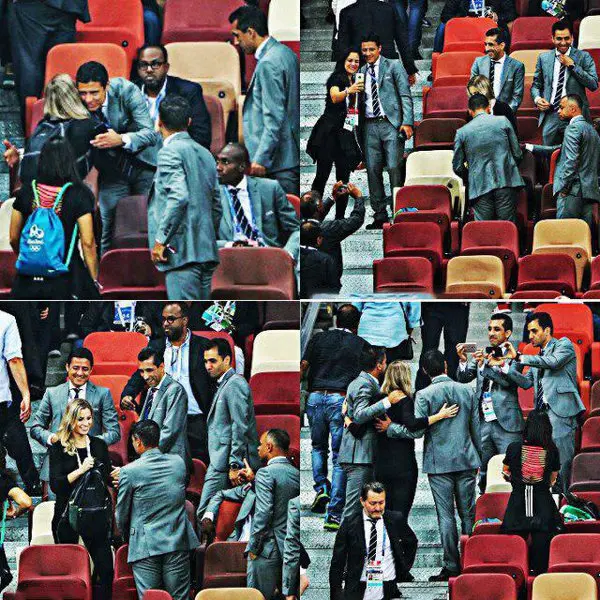در این تصاویر دیده می شود 2 طرفدار خارجی داور کشورمان با او احوالپرسی گرمی کرده و عکس های یادگاری می اندازند.