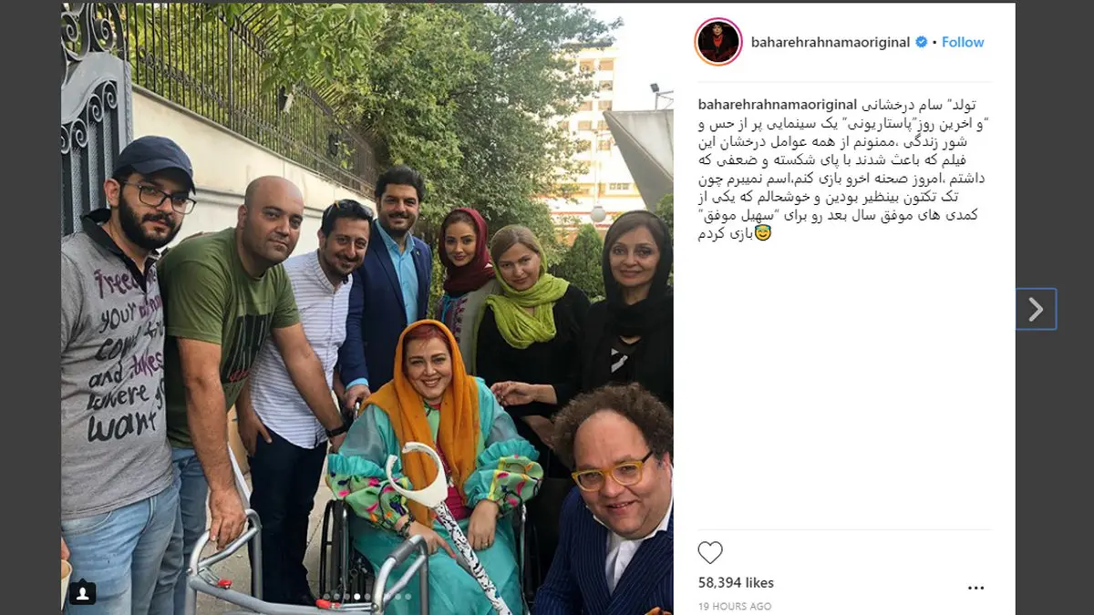 تولد” سام درخشانی “و اخرین روز”پاستاریونی” یک سینمایی پر از حس و شور زندگی ،ممنونم از همه عوامل درخشان این فیلم که باعث شدند با پای شکسته و ضعفی که داشتم ،امروز صحنه اخرو بازی کنم،اسم نمیبرم چون تک تکتون بینظیر بودین و خوشحالم که یکی از کمدی های موفق سال بعد رو برای “سهیل موفق” بازی کردم
