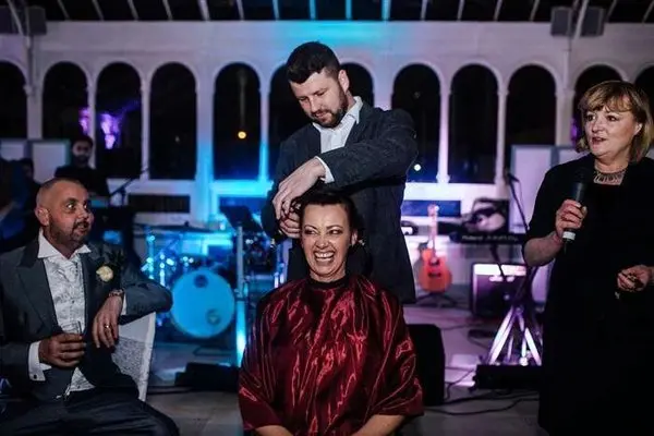 پس از انجام حرکت شجاعانه عروس برای زدن موهایش وی مورد تشویق همه دوستان و افراد حاضر در مراسم قرار گرفت.