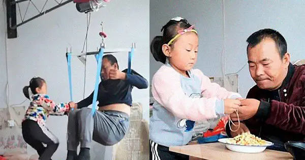 به گزارش گروه حوادث Accidents رکنا، این مرد چینی سال گذشته در یک تصادف Crash فلج میشود. زنش چند ماه بعد طلاق میگیرد و فرزندانش را با خود میبرد ولی دخترش برمیگردد پیش پدرش و در حالی که شش سال دارد از پدرش مراقبت می کند.