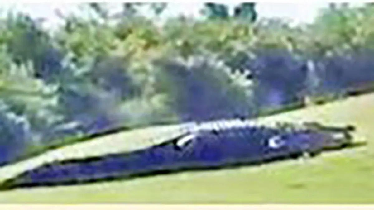 رکنا: پیاده روی تمساح 5 متری در زمین گلف باعث وحشت حاضران شد.