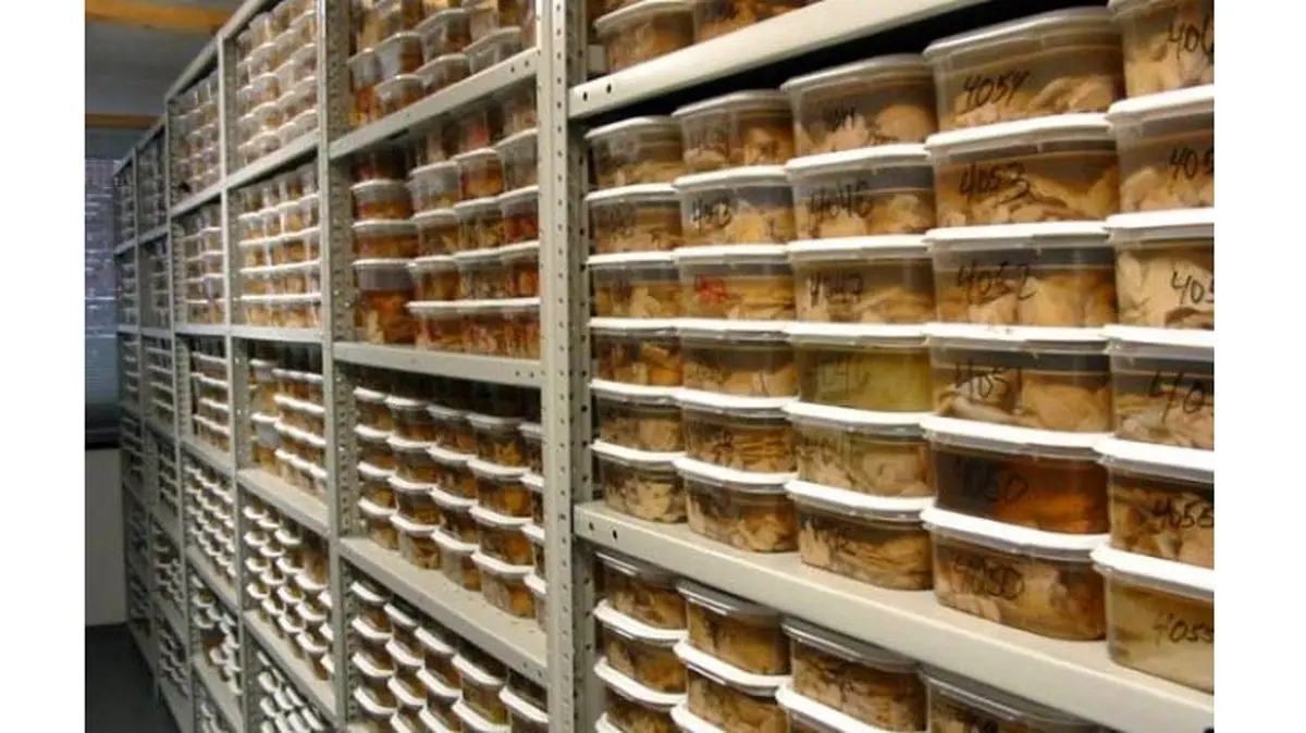 در قفسههای این بانک بیش از ۲۰۰۰ مغز انسان برای دست یابی به ذخیره ثابت ماده خاکستری مغز وجود دارد. ماده خاکستری برای انجام بیشتر آزمایشها ضروری است.