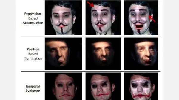 گروهی از محققان شرکت دیسنی نوع جدیدی سیستم پروجشکن ساخته اند که می تواند حرکات و حالات صورت بازیگرا را ردیابی کند و با توجه به آن گریم بازیگر Actor را با نور به صورت او بتاباند. در این حالت دیگر نیازی نیست بازیگر گریم فیزیکی انجام دهد.
