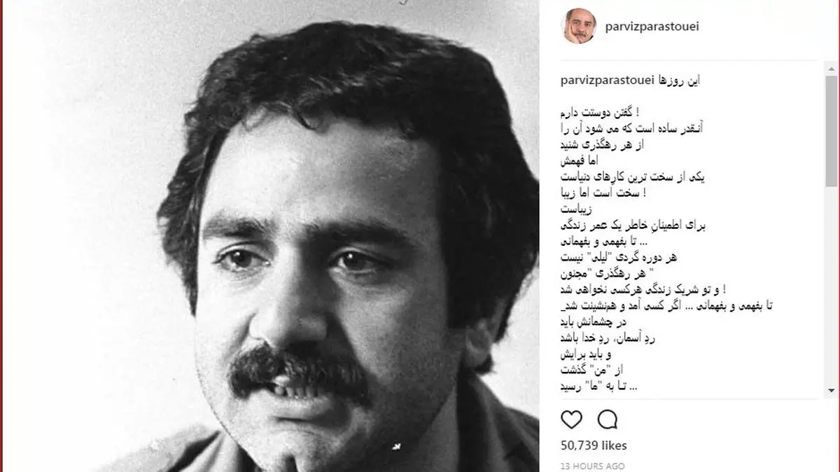 متنی زیبا از پست جدید پرویز پرستویی: