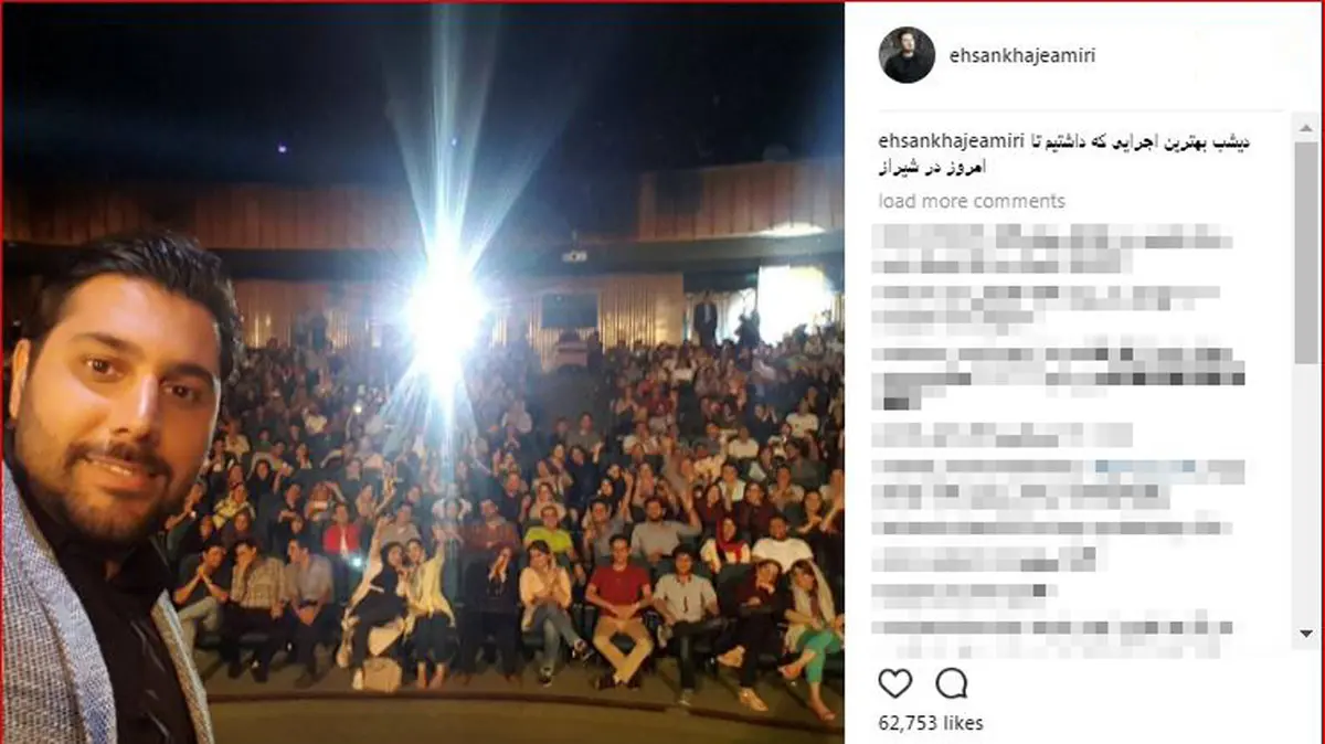 رکنا: احسان خواجه امیری عکسی از کنسرتش در شیراز منتشر کرد.
