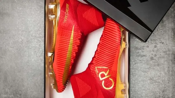 رونالدو دربارۀ این کفش های قرمز رنگ که عبارت CR7 روی آن نقش بسته است نوشت: «کفشی جدید ... با همان هدف ... پیش به جلو».
