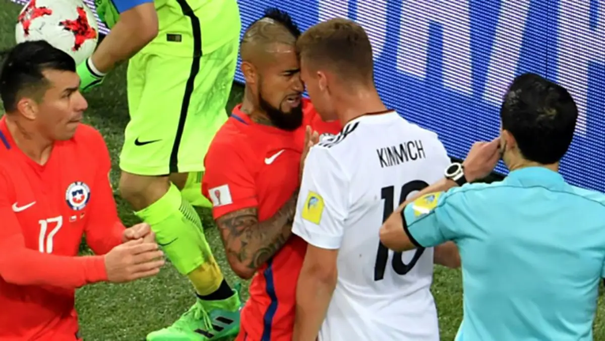 به گزارش بیلد، در بازی دیشب (یکشنبه)، هافبک جنگنده تیم ملی شیلی، آرتورو ویدال و ستاره جوان تیم ملی آلمان، یاشوا کیمیش، برای لحظاتی درگیر شدند؛ برخورد دو بازیکن بایرن مونیخ محدود به مشاجره لفظی نشد و ویدال، کیمیش را بهعقب هل داد. او پس از پایان مسابقه در مورد این درگیری گفت: