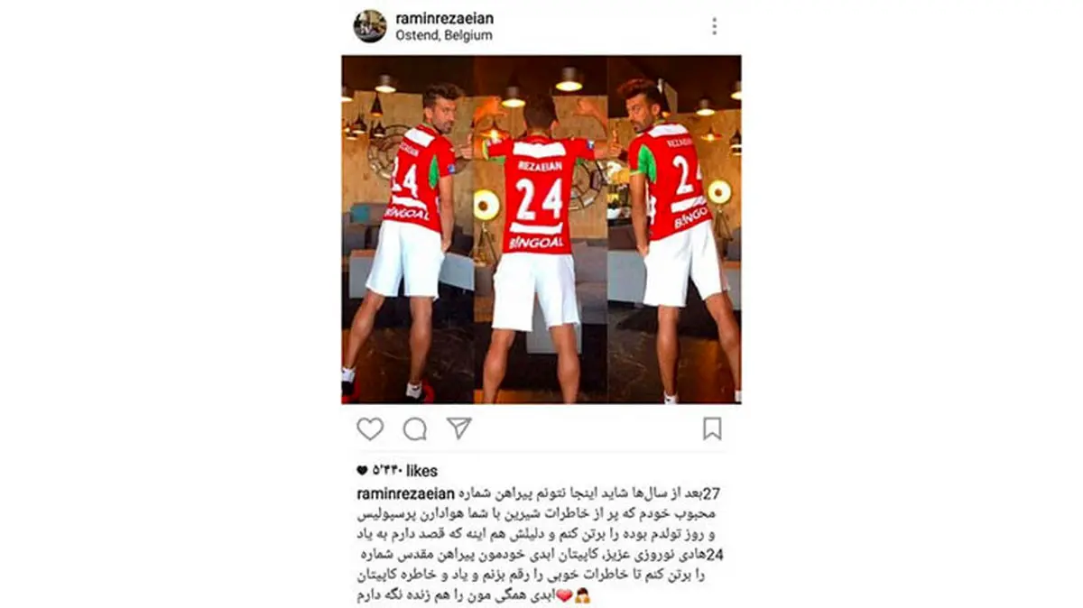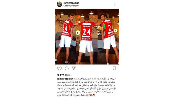 رامین رضاییان با انتشار پست اینستاگرامی در صفحه اجتماعی خود اعلام کرد که به یاد کاپیتان نوروزی شماره 24 را در تیم اوستنده بلژیک بر تن خواهد کرد.برای ورود به کانال تلگرام ما کلیک کنید.