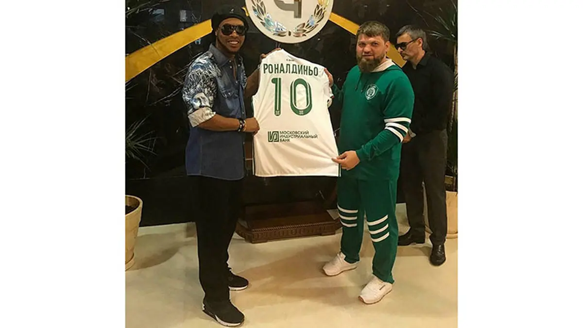 قدیروف در جریان دیدار با رونالدینیو، پیراهن افتخاری شماره 10 باشگاه احمد گروژنی را به رونالدینیو اهدا کرد و این ستاره برزیلی نیز با حضور در زمین چمن ورزشگاه، پیراهنش را به دوربینهای تلویزیونی و تماشاگران نشان داد.برای ورود به کانال تلگرام ما کلیک کنید.