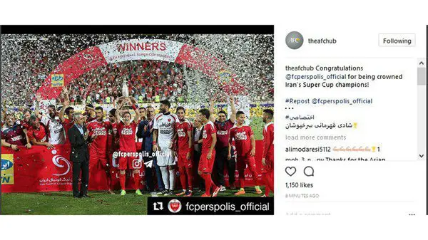 در همین راستا، کنفدراسیون فوتبال آسیا که تیم های راه یافته به مرحله یک چهارم نهایی لیگ قهرمانان آسیا را به طور ویژه ای زیر نظر دارد، دقایقی پیش با انتشار پستی در صفحه اینستاگرام Instagram رسمی خود، این قهرمانی را به سرخپوشان تبریک گفت.برای ورود به کانال تلگرام ما کلیک کنید.