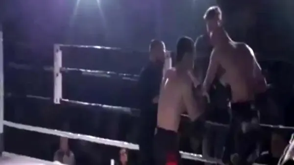 جا انداختن دست بوکسور توسط رقیب در وسط رینگ + فیلم
