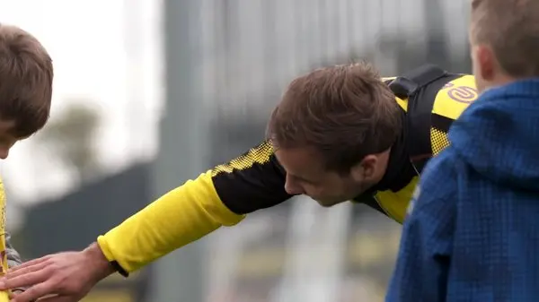 رکنا: ماریو گوتزه هافبک آلمانی باشگاه دورتموند در یکی از تمرین ها یک هوادار خردسال را به داخل زمین آورد.