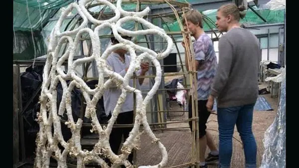 این ساختار که وسالوما آن را «سازه پرورشی» می نامد در حقیقت از مایسلین موجود در قارچ صدفی به وجود می آید که با مقوای خیس ترکیب می شود. مایسلین بخش گیاهی قارچ است که در زمین یا میان گیاهان مرده ریشه می دواند و مواد غذایی را از ارگانیسم دریافت می کند.