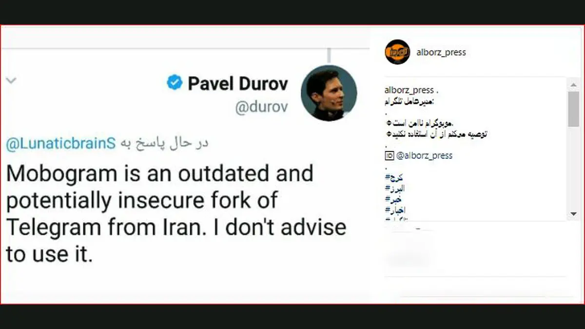 رکنا: مدیر عامل تلگرام با انتشار پستی در اینستاگرامش خواست تا کاربران از موبوگرام استفاده نکنند.