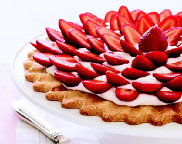 بعد توت فرنگی های خرد شده رو دور تا دور روی مواد پنیری قرار داده روی قالبمو سلفون کشیده به مدت پنج ساعتی داخل یخچال گذاشته