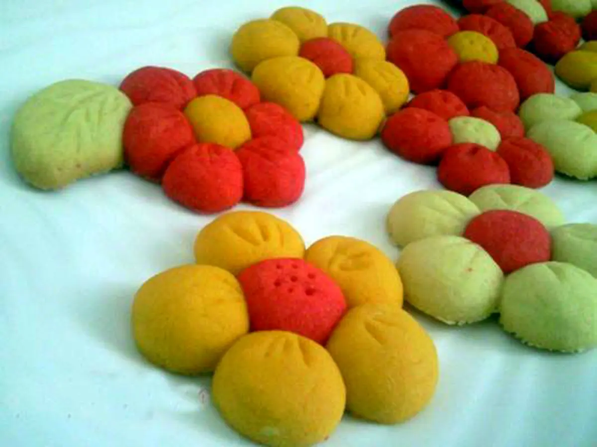 3-آرد الک شده را کم کم اضافه میکنیم و با نوک انگشتان مخلوط میکنیم آرد را تا جایی اضافه میکنیم که خمیر چسبندگیش را از دست ندهد و نسبتا چسبندگی داشته باشد چون در غیر اینصورت گلبرگها بهم نمیچسبد.