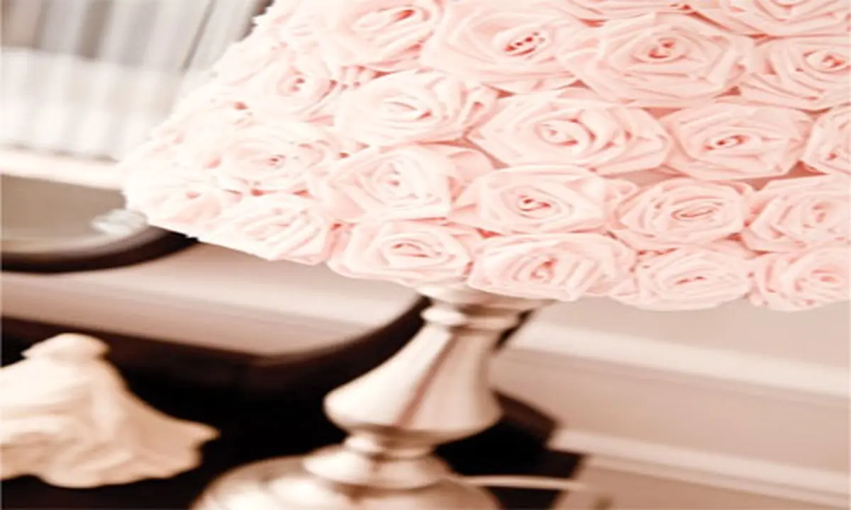 بعد از چسباندن گلها روی تور به حد کفایت شروع به چسباندن نوارها از بالای کلاهک چراغ به صورت منظم کنید. توجه داشته باشید بلافاصله که به کلاهک چسب تفنگی میزنید باید نوار گل را بچسبانید در غیر این صورت نوارها محکم نمیشود.