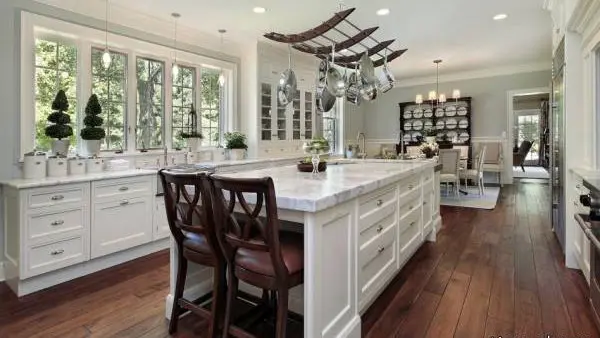آویزان کردن قابلمه ها و ماهی تابه ها در بالای جزیره آشپزخانه