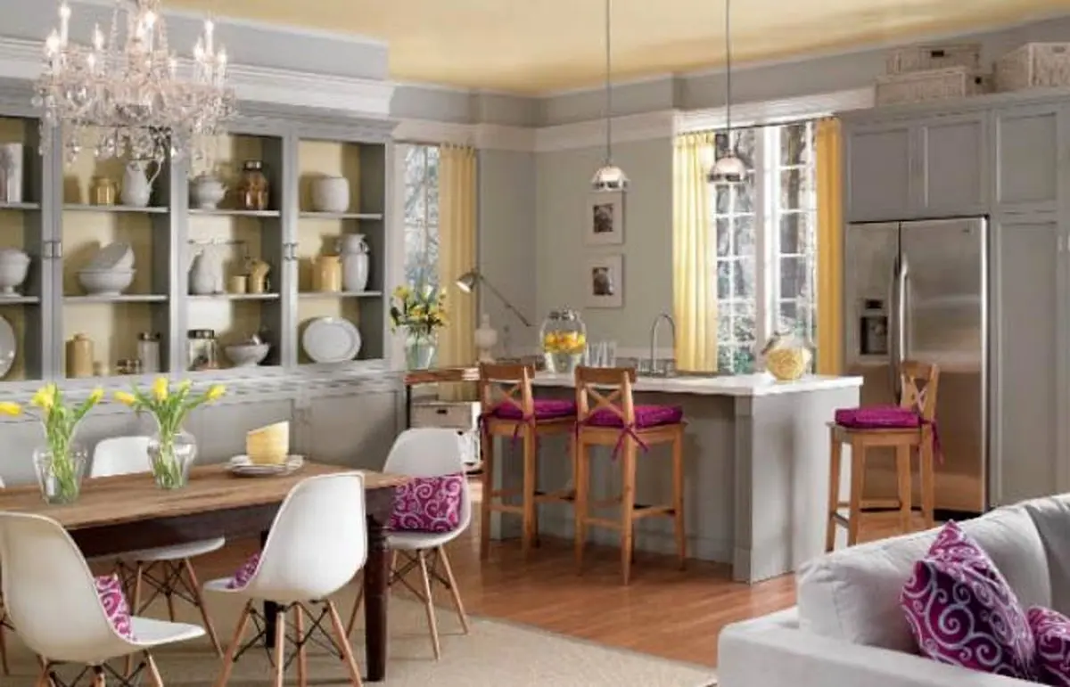 یا آن دو اتاقی که بهم ربط دارند را با هم هماهنگ کنید. لازم نیست رنگ ها یکی باشند یا طرح کاغذ دیواری یکجور باشد. ولی یک رنگ اصلی در طرح شما باید در این دو اتاق متصل بهم وجود داشته باشد.