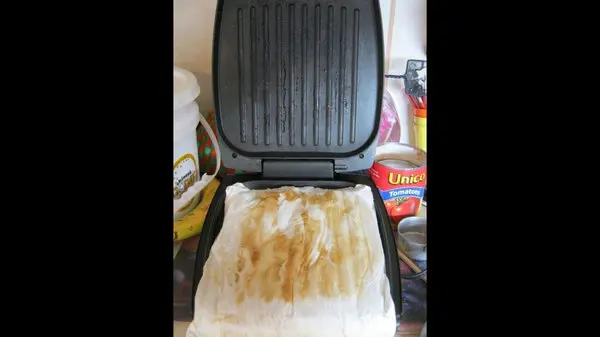 بعد از خیس شدن آن ها ، آب اضافه را گرفته و دستمال ها را مطابق شکل روی دستگاه قرار دهید. سپس درب گریل را بسته و در زمانی که دستگاه در حال خنک شدن است غذای خود را نوش جان کنید. سپس درب گریل را باز کرده (نیازی نیست مدت طولانی صبر کنید تا دستگاه خنک شود)و و با استفاده از دستمال آشپزخانه گریل را تمیز کنید.