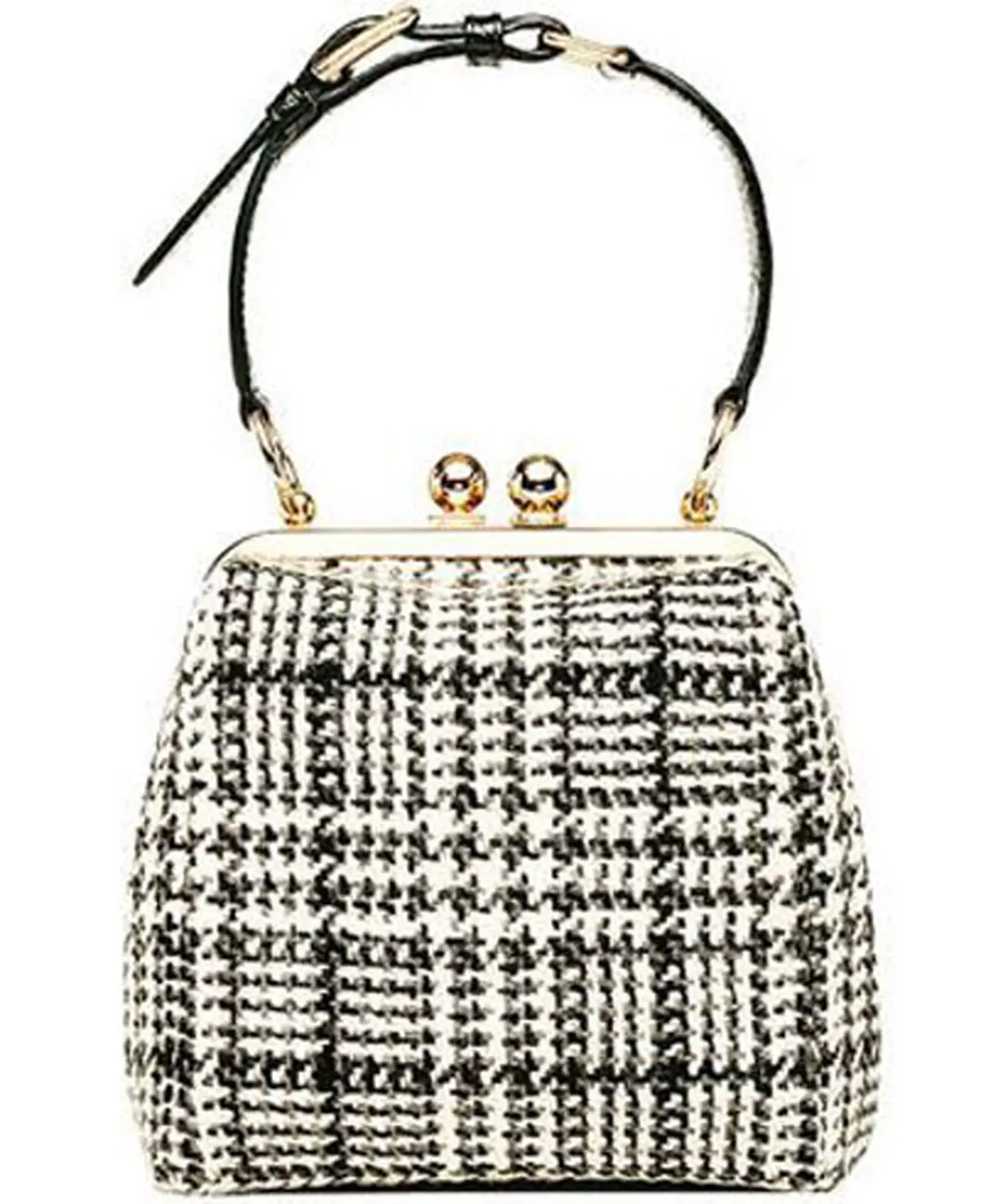 این هم یک کیف دسته کوتاه مجلسی دیگر دستپخت برند بولگاری. کیفی که با همین شکل و شمایل در پارچه هایی با طرح ها و رنگ های مختلف از رنگ نارنجی گرفته تا بنفش و زرد تکرار شده است اما از میان همه آنها این  طرح سیاه و سفید توانست در ردیف بهترین کیف ها قرار بگیرد!