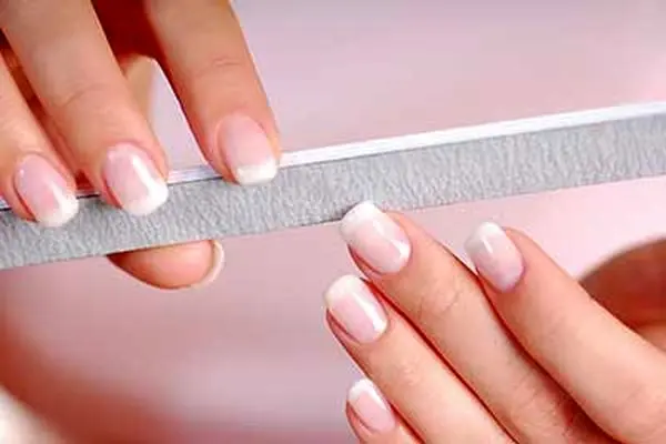 به وسیله ی سوهان ناخن گوشه و بالای ناخن های خودتان رو تمیز و مرتب کنید و دقت کنید که اینکار را با آرامش انجام دهید و به روی ناخن هاتون هیچ گونه فشاری وارد نکنید چرا که باعث آسیب به ناخن می شود.