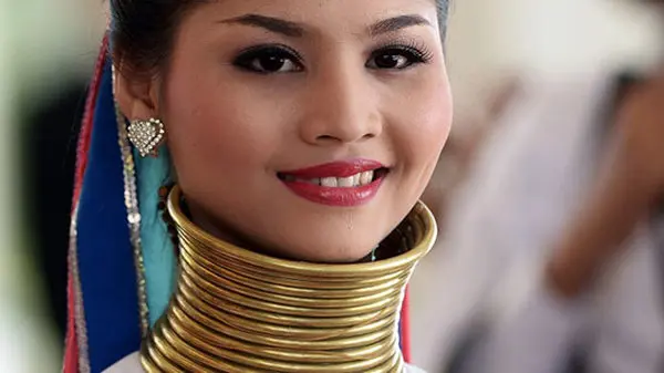 همه ما تصاویری از زنان قبیله کارن در میانمار دیده ایم که گردنبندهای قطوری به گردن دارند. آن ها به قبیله گردن دراز یا زرافه نیز معروف هستند. این ویژگی نشانه زیبایی و سلامت زنان محسوب می شود و جذابیت آن ها را برای مردها بیشتر می کند. آن ها از سن ۴ یا ۵ سالگی این گردنبندهای بلند را استفاده می کنند و هر زمان که به وزن گردنبند عادت کنند یک حلقه دیگر به آن اضافه می شود. وزن این گردنبندها حدود ۱۱ کیلو است.