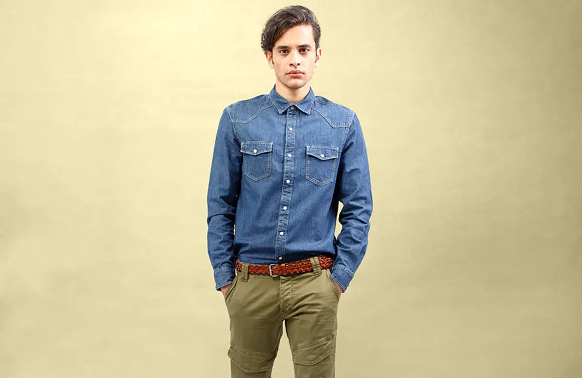آبی و سبز یک ترکیب شیک به وجود میآورد، پس پیراهن جینتان را با یک شلوار کتان مردانه ی زیتونی ست کنید.