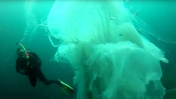 لحظه باورنکردنی شنای غواص در کنار عروس دریایی غول پیکر + فیلم و عکس