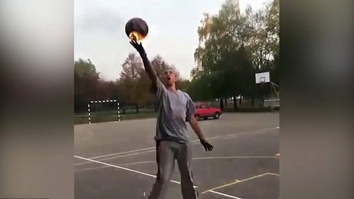 رکنا: بسکتبالیست خیابانی حرفه ای با توپ آتشین دست به حرکات نمایشی زد و فیلم آنرا در صفحه خود با علاقه مندان و هواداران اش به اشتراک گذاشت.