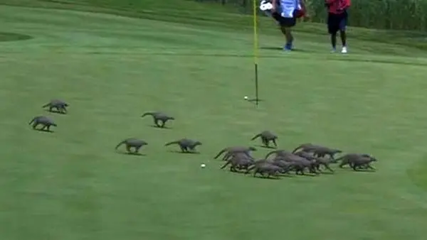 با هجوم گروهی از خدنگ ها به زمین گلف بازی در حال انجام در آن متوقف شد. این حادثه Incident جالب در آفریقای جنوبی رخداده است. خدنگ ها که زمین گلف را مورد جستجو قرار داده بودند بازی را به حالت معلق درآوردند. خدنگ، خانوادهای از گوشتخواران کوچک در گروه گربهسانان قرار دارند. آنها در اوراسیای جنوبی و آفریقا زندگی میکنند و ۳۴ گونه مختلف دارند که در ۱۴ سرده قرار میگیرند.برای ورود به کانال تلگرام ما کلیک کنید.
