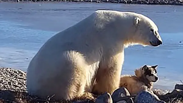 اما ثبت یک صحنه در منطقه مانی توبای کانادا تعجب بسیاری را برانگیخته است. یک سگ مختص کشیدن سورتمه در حالی که به تنهایی رها شده است در کنار یک خرس قطبی دیده می شود. انتظار می رفت این خرس قطبی شدیدا به این سگ حمله کند اما این خرس پس از نزدیک شدن به سگ سورتمه دست نوازش خود را بر روی سر این سگ می کشد.