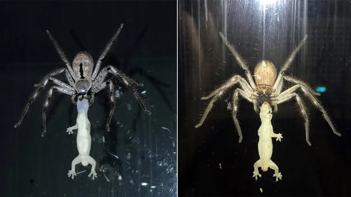 مارمولک مغلوب ناهار عنکبوت شد + تصاویر