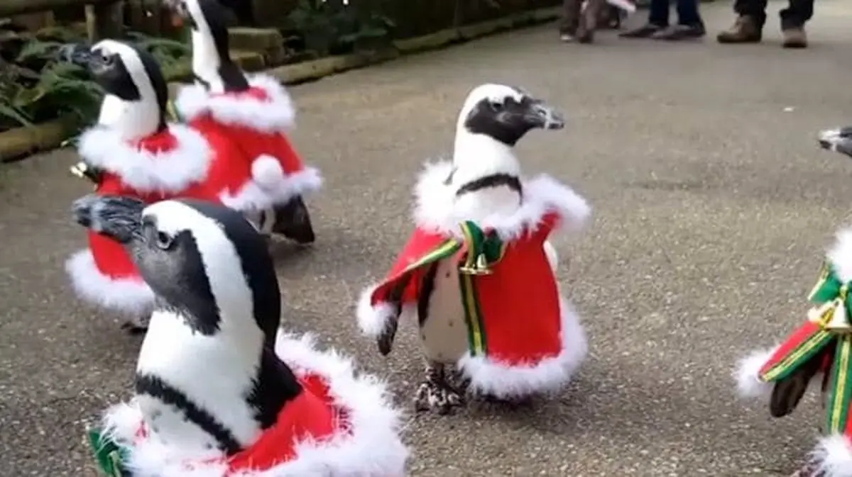 رژه پنگوئن های بابانوئل در ژاپن +فیلم و عکس