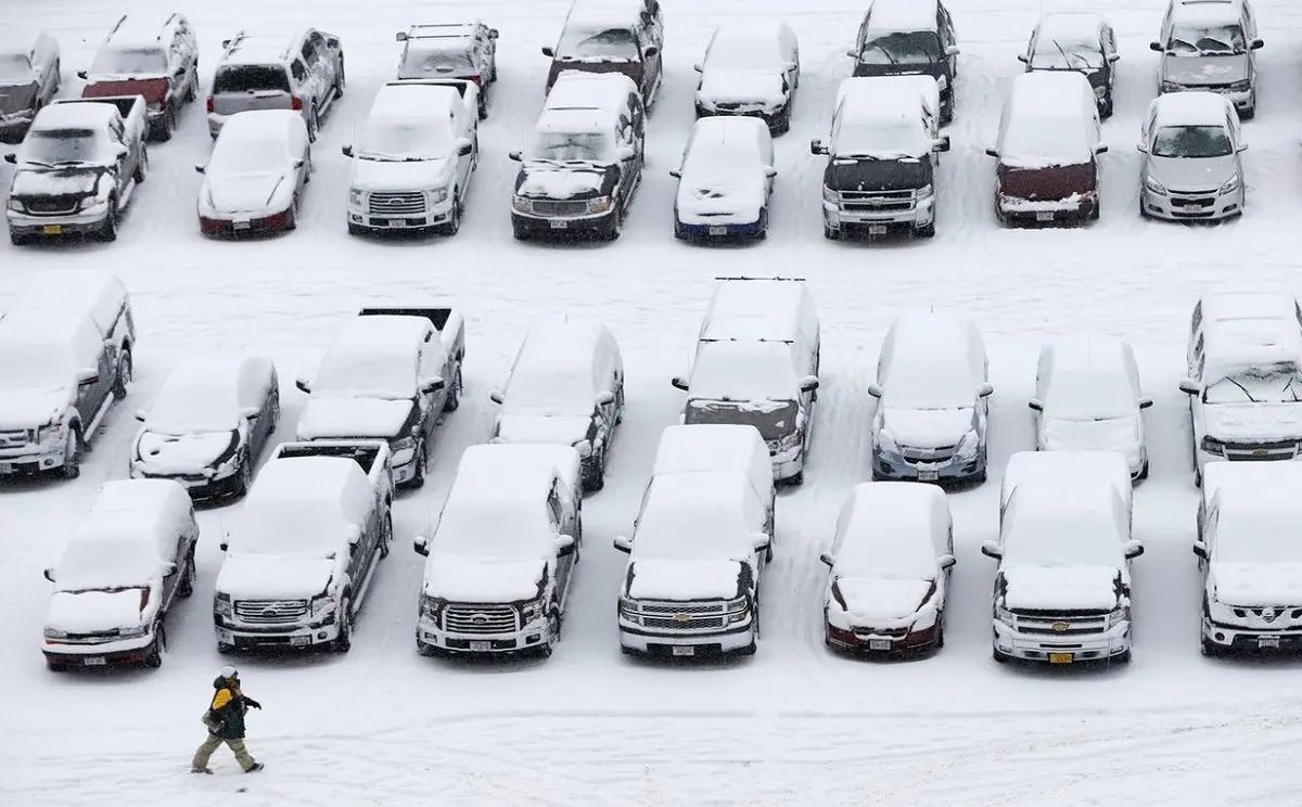 بارش برف شدید در سیاتل امریکا که باعث سفید پوش شدن بسیاری از خودروهای پارک شد .
