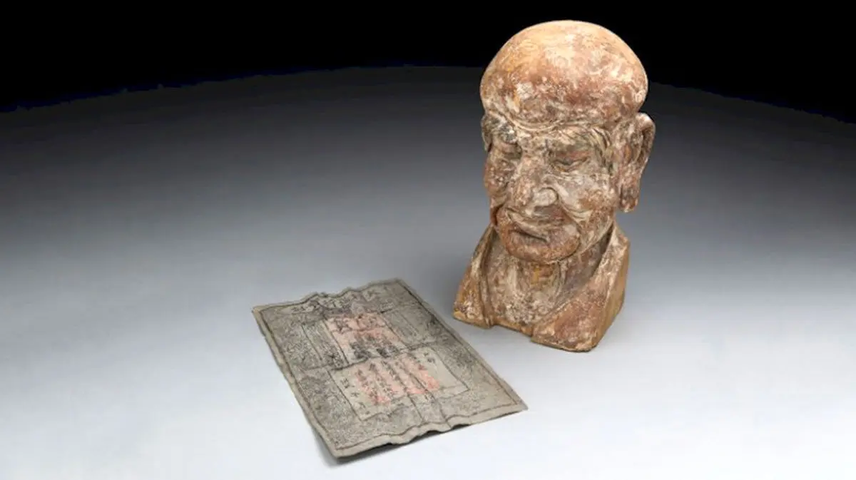 اسکناس متعلق به سلسله مینگ در چین بوده و به 700 سال پیش باز می گردد. این مجسمه در سیدنی استرالیا برای حراج به معرض نمایش گذاشته شده تصادفی اسکناس پیدا شده است .