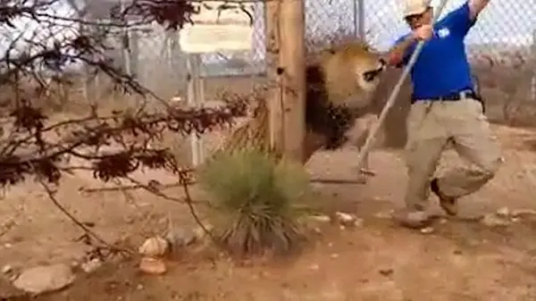 شیر، نگهبان باغ وحش را غافلگیر کرد / این اتفاق در برابر نگاههای تماشاچیان رخ داد+فیلم و عکس