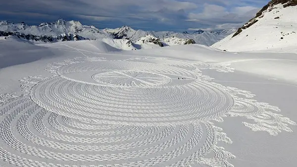 او در ده سال گذشته 175 اثر بر روی برف خلق کرده است و قصد دارد حداقل 30 طرح دیگر بکشد.