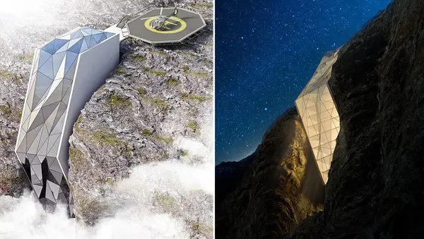 رکنا: طراح هندی " آندری روزکو" هتل شیشه ای در دل کوه های آلپ طراحی کرده است که به آسانسور و محل فرود هلی کوپتر مجهز است .